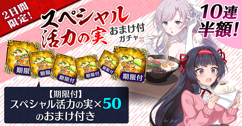 【2日間限定&10連半額!】スペシャル活力の実おまけ付ガチャ