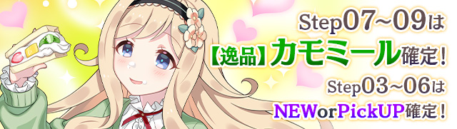 - ステップアップガチャは、Step数によってガチャの提供内容が変化します。 Step数の上昇により必ずしも提供内容がより良い内容に変化することを保証するわけではありません。