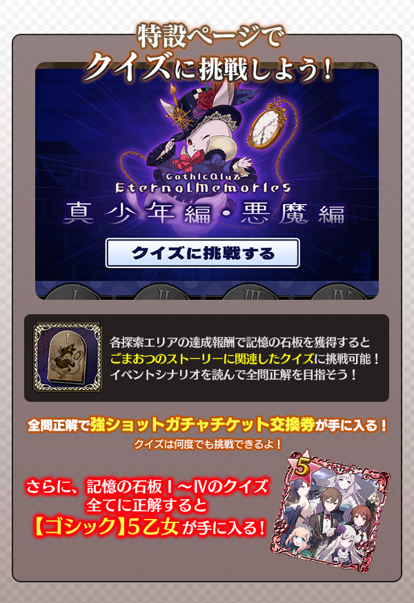 | 記憶の石板Ⅰ~Ⅳ 特設ページでクイズに挑戦! | 各1個 |