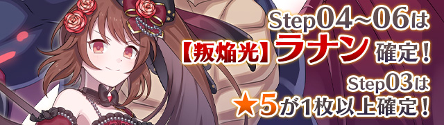 - ステップアップガチャは、Step数によってガチャの提供内容が変化します。 Step数の上昇により必ずしも提供内容がより良い内容に変化することを保証するわけではありません。