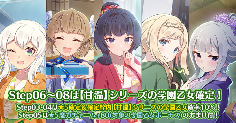 【Step03・04は【甘温】シリーズの学園乙女出現確率10%!】湯けむりバレンタイン学園乙女ステップアップガチャ