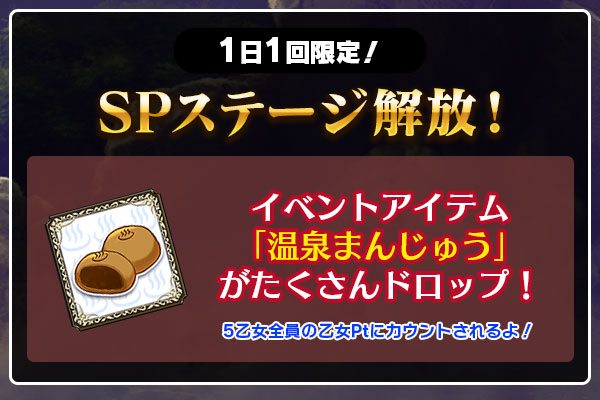 | 2話解放条件 | 温泉まんじゅうを500個獲得 |