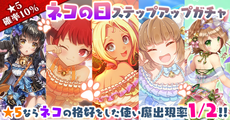 【★5ならネコの格好をした使い魔出現率 1/2!!】ネコの日ステップアップガチャ