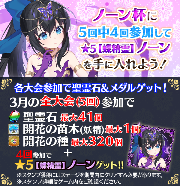【毎週土曜!4回参加で★5【蝶精霊】ノーンGET】3月全国スコア大会!!