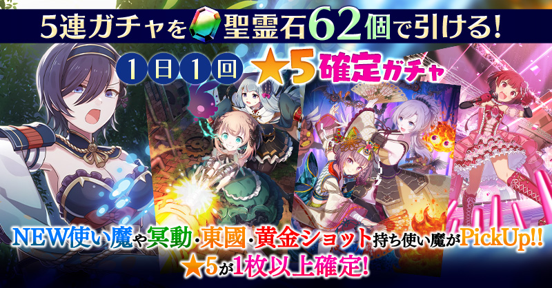 【一部NEW使い魔や冥動・東國・黄金ショット持ち使い魔などがPickUP】1日1回★5確定ガチャ