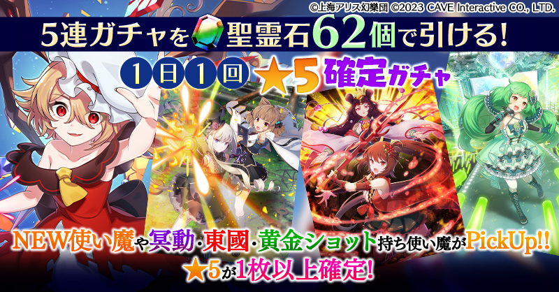 【一部NEW使い魔や冥動・東國・黄金ショット持ち使い魔などがPickUP】1日1回★5確定ガチャ