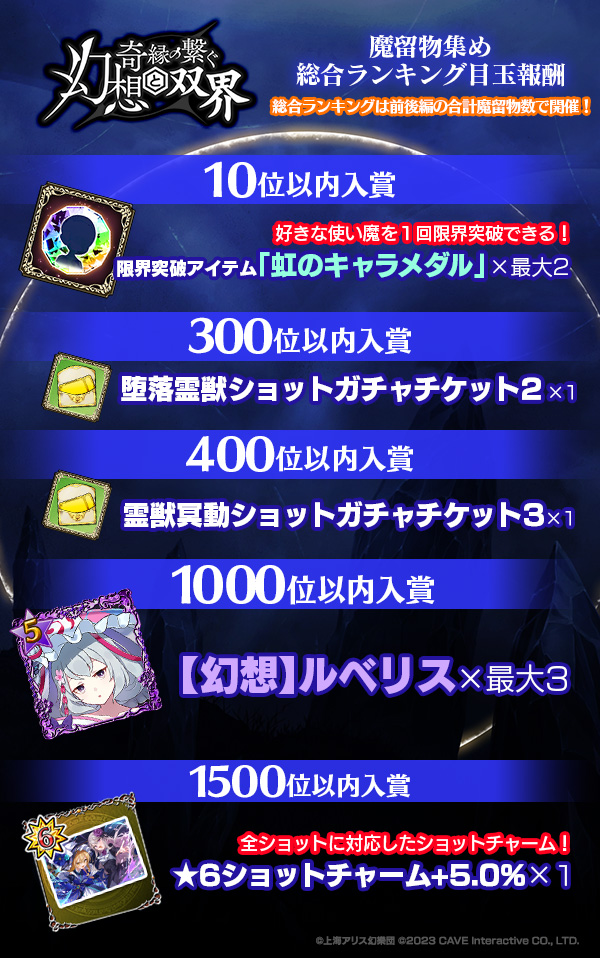 | 1500位以内 入賞 | ★6ショットチャーム_霊夢&ラナン(+5.0%,全ショット) | 1個 |