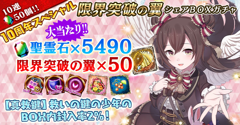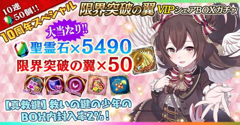 【VIPシェアBOXガチャも登場!『聖霊石×5490』『限界突破の翼×50』が当たるチャンス!】10周年スペシャル 限界突破の翼シェアBOXガチャ