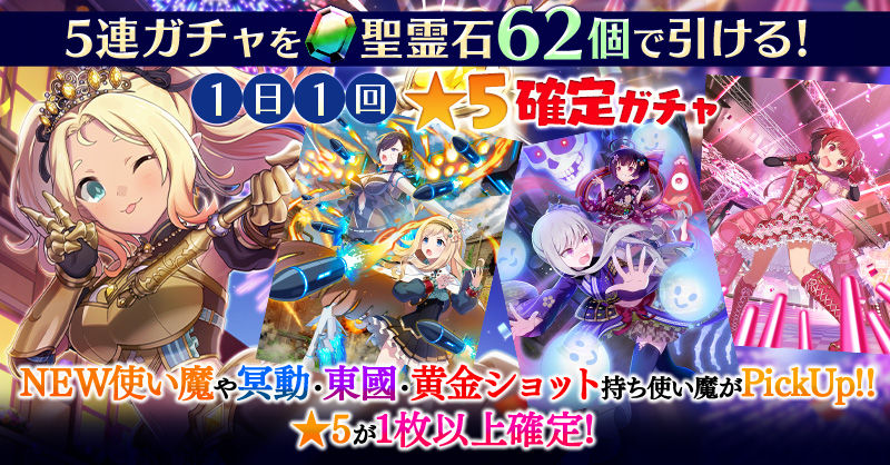 【一部NEW使い魔や冥動・東國・黄金ショット持ち使い魔などがPickUP】1日1回★5確定ガチャ