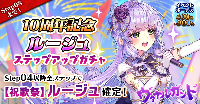 【Step04以降全ステップでイベントボーナス+400%~900%持ち【祝歌祭】ルージュ確定!】10周年記念ルージュステップアップガチャ
