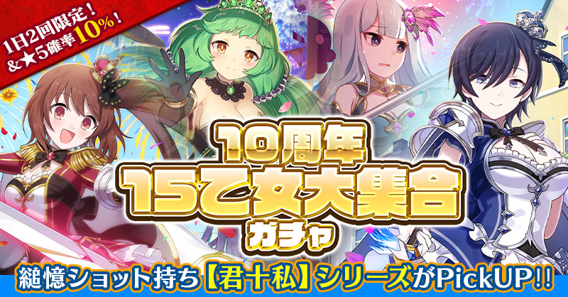 【1日2回限定&★5確率10%!】10周年15乙女大集合ガチャ