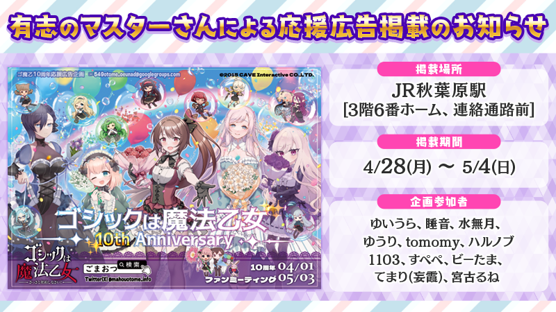 「ゴシックは魔法乙女」リリース10周年を記念して有志のマスターさんによる応援広告を掲載していただきました!