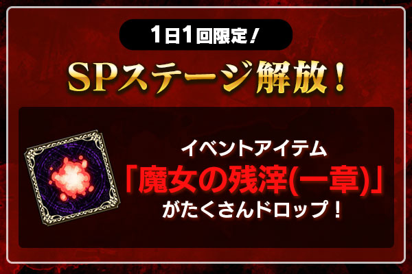 メインストーリー応援キャンペーン実施中!出撃>ストーリータブの全ステージでも「魔女の残滓(一章)」がドロップするよ♪