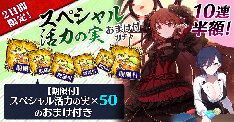 【2日間限定&10連半額!】スペシャル活力の実おまけ付ガチャ