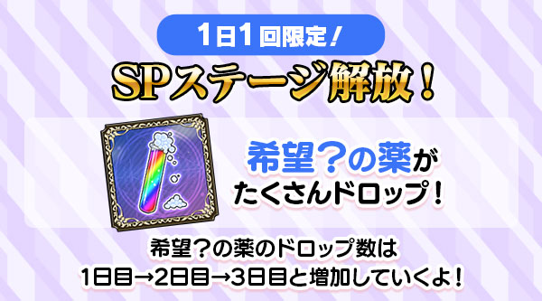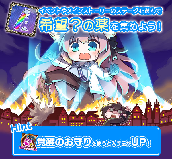 メインストーリー応援キャンペーン実施中!出撃>ストーリータブの全ステージでも「希望?の薬」がドロップするよ♪