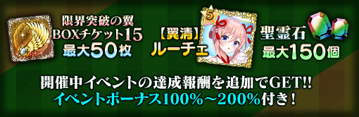 | 限界突破の翼 BOXチケット15 | 最大15個 | 最大30個 | 最大50個 |