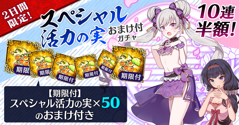 【2日間限定&10連半額!】スペシャル活力の実おまけ付ガチャ