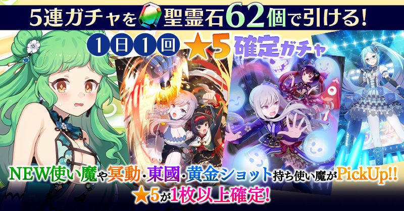 【一部NEW使い魔や冥動・東國・黄金ショット持ち使い魔などがPickUP】1日1回★5確定ガチャ