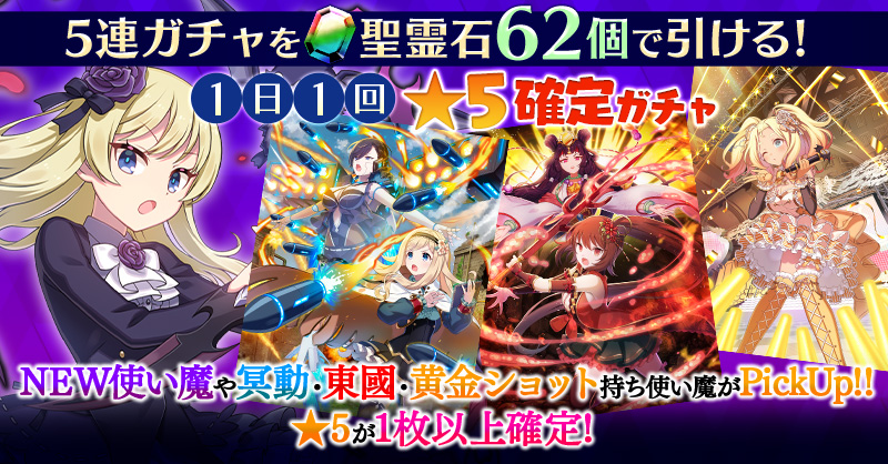 【一部NEW使い魔や冥動・東國・黄金ショット持ち使い魔などがPickUP】1日1回★5確定ガチャ