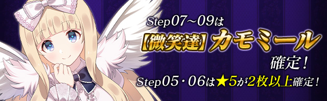 - ステップアップガチャは、Step数によってガチャの提供内容が変化します。 Step数の上昇により必ずしも提供内容がより良い内容に変化することを保証するわけではありません。