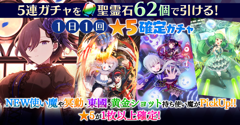 【一部NEW使い魔や冥動・東國・黄金ショット持ち使い魔などがPickUP】1日1回★5確定ガチャ
