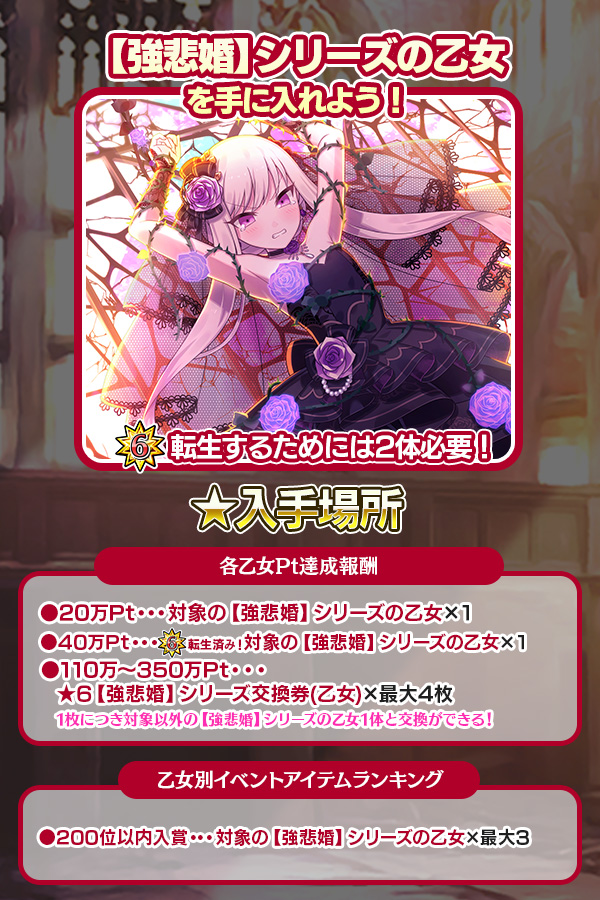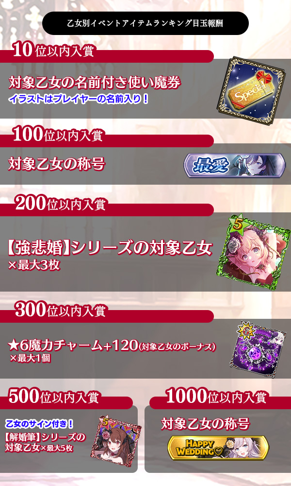 イベント特設ページの乙女ランキング報酬について「11~50位」「301~500位」の記載がなかったため修正いたしました。