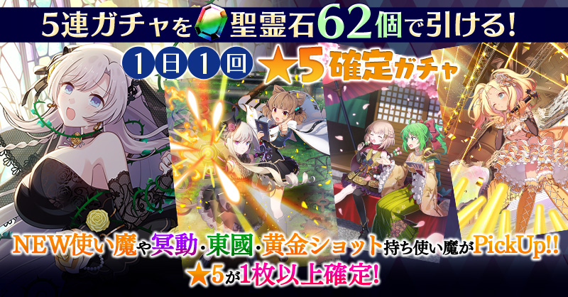 【一部NEW使い魔や冥動・東國・黄金ショット持ち使い魔などがPickUP】1日1回★5確定ガチャ