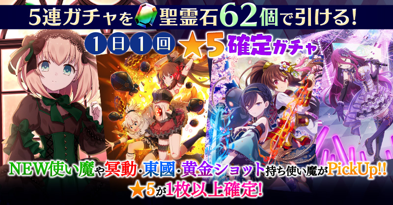 【一部NEW使い魔や冥動・東國・黄金ショット持ち使い魔などがPickUP】1日1回★5確定ガチャ