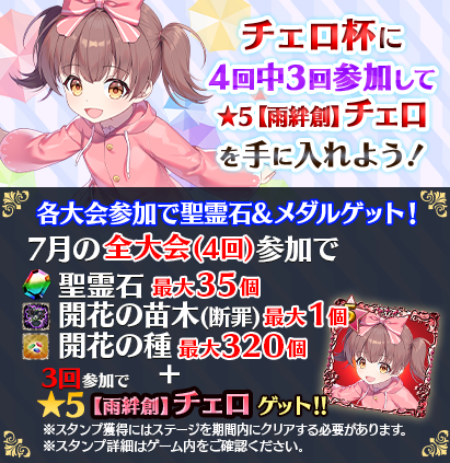 【毎週土曜!3回参加で★5【雨絆創】チェロGET】7月全国スコア大会!!