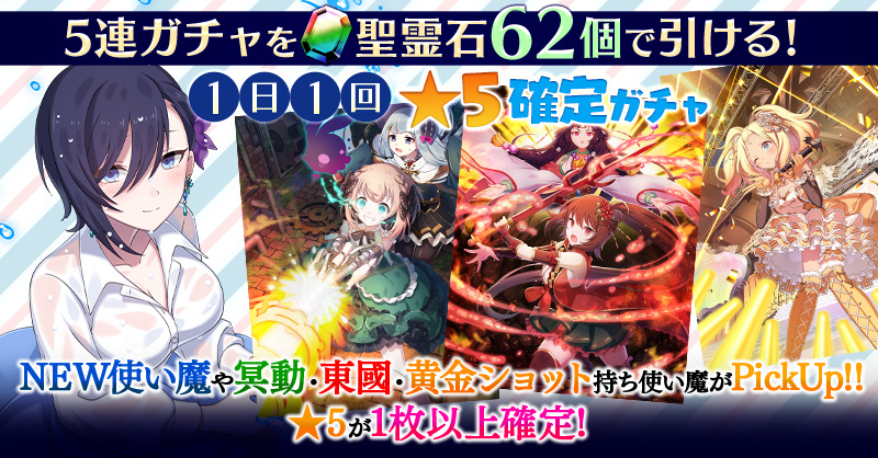 【一部NEW使い魔や冥動・東國・黄金ショット持ち使い魔などがPickUP】1日1回★5確定ガチャ