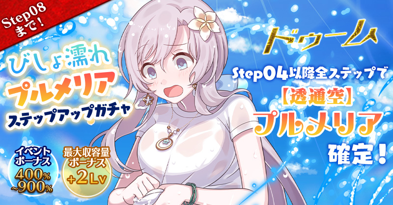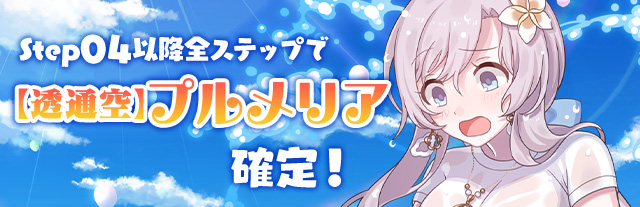 【Step04以降全ステップでイベントボーナス+400%~900%持ち【透通空】プルメリア確定!】びしょ濡れプルメリアステップアップガチャ