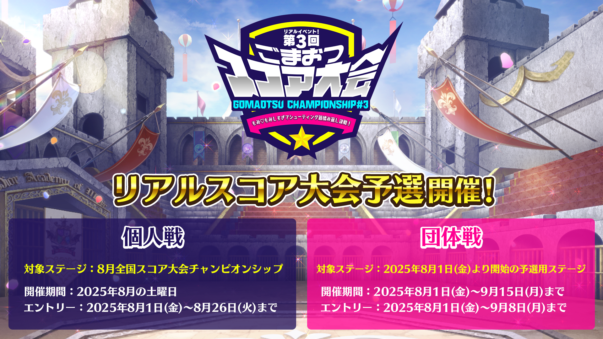 第3回ごまおつスコア大会の詳しい予選内容や本番レギュレーションは大会特設サイトにてご確認ください。