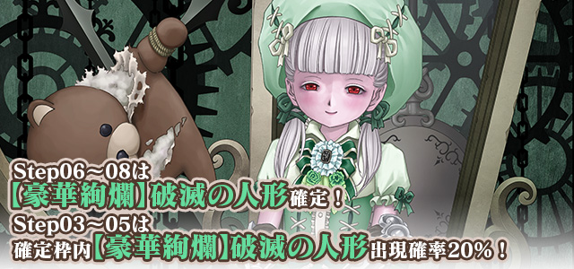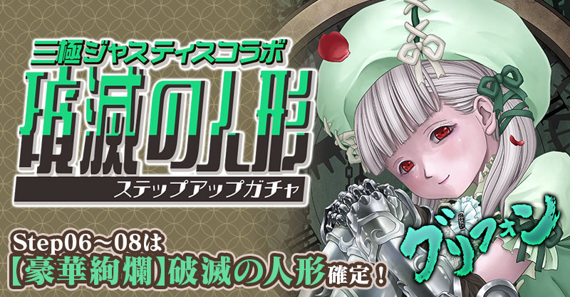 【『三極ジャスティス』のイラストの破滅の人形が登場!】三極ジャスティスコラボ破滅の人形ステップアップガチャ