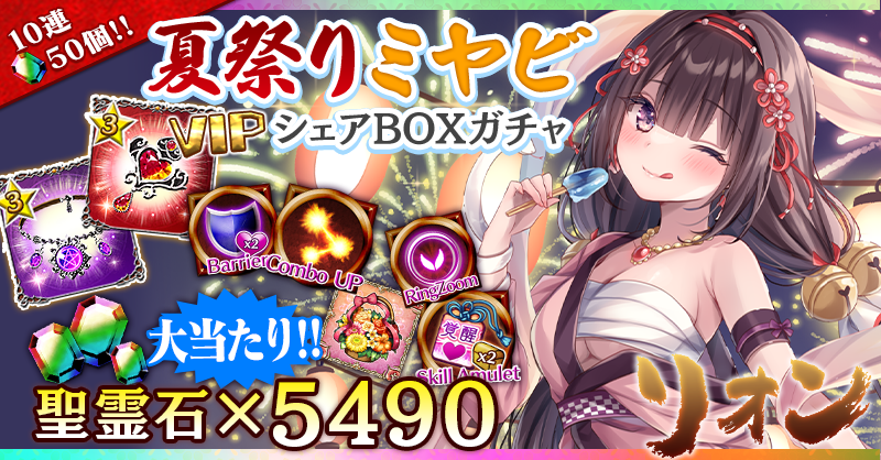 【VIPシェアBOXガチャも登場!『聖霊石×5490』が当たるチャンス!】夏祭りミヤビシェアBOXガチャ