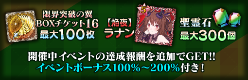 | 限界突破の翼 BOXチケット16 | 最大30個 | 最大60個 | 最大100個 |