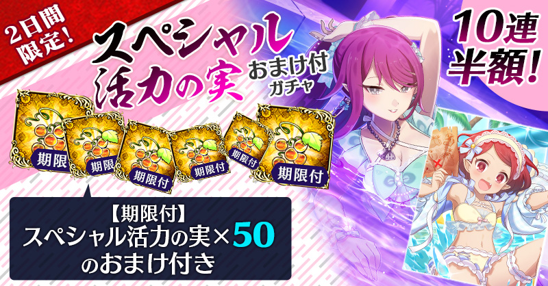 【2日間限定&10連半額!】スペシャル活力の実おまけ付ガチャ