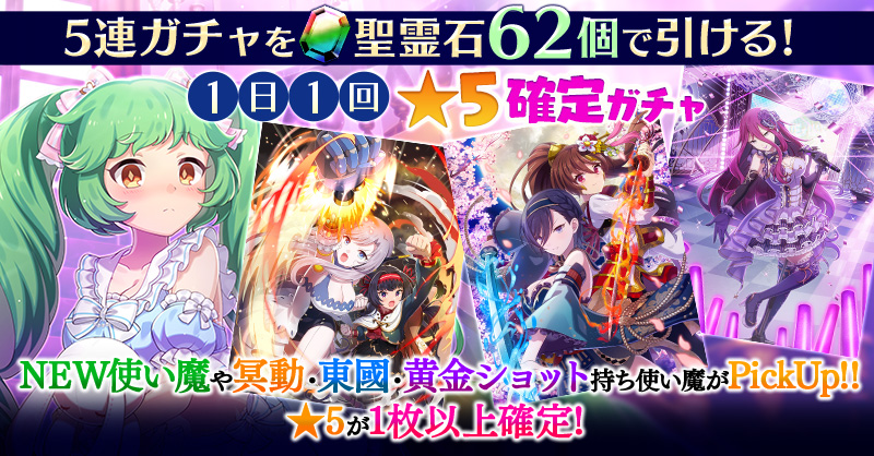 【一部NEW使い魔や冥動・東國・黄金ショット持ち使い魔などがPickUP】1日1回★5確定ガチャ