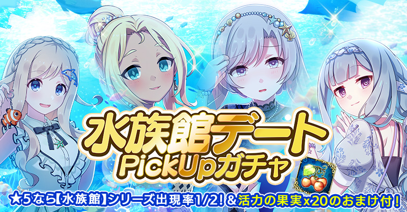 【★5なら【水族館】シリーズ出現率1/2!&活力の果実x20のおまけ付!】水族館デートPickUpガチャ