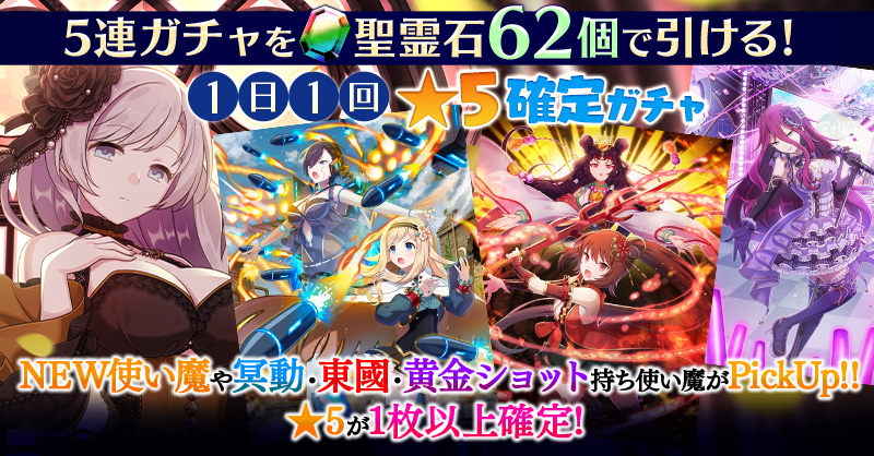 【一部NEW使い魔や冥動・東國・黄金ショット持ち使い魔などがPickUP】1日1回★5確定ガチャ