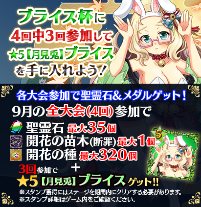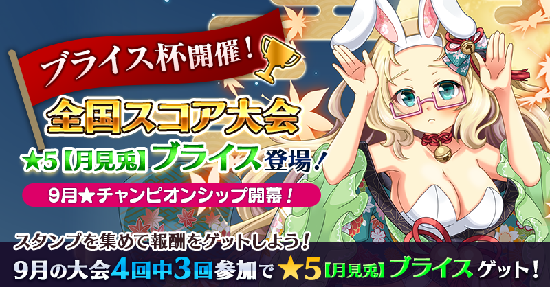 【毎週土曜!3回参加で★5【月見兎】ブライスGET】9月全国スコア大会!!