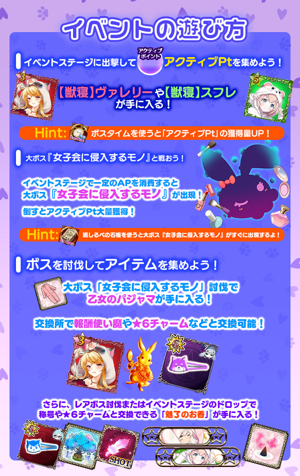 ボス討伐イベント【ドキドキ!?どうぶつパジャマ恋バナ会】開催!