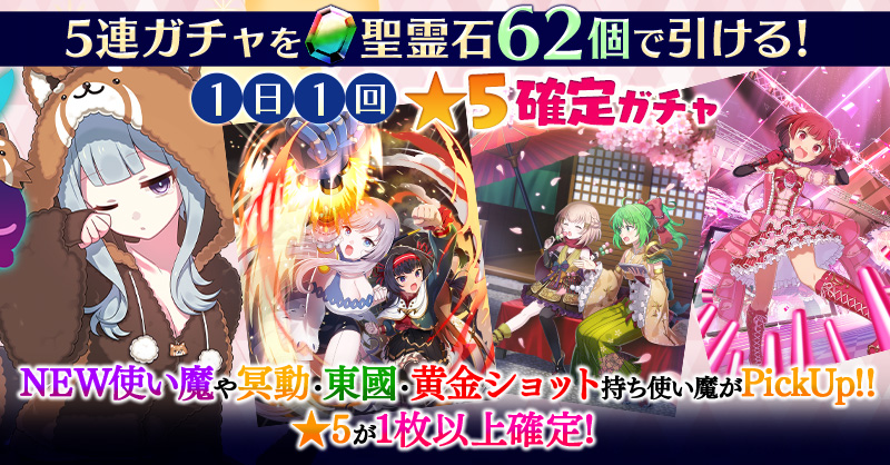 【一部NEW使い魔や冥動・東國・黄金ショット持ち使い魔などがPickUP】1日1回★5確定ガチャ