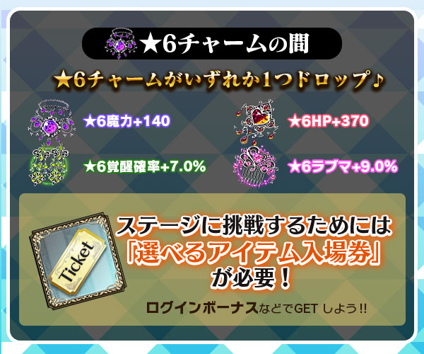 【聖霊石や★6チャームなどがステージでドロップ!】選べるアイテム!ステージ開催!
