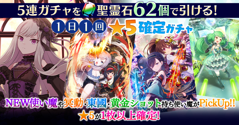 【一部NEW使い魔や冥動・東國・黄金ショット持ち使い魔などがPickUP】1日1回★5確定ガチャ