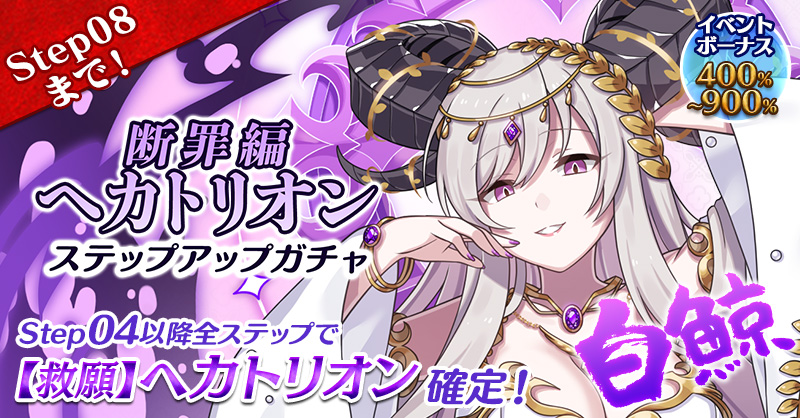 【Step04以降全ステップでイベントボーナス+400%~900%持ち【救願】ヘカトリオン確定!】断罪編ヘカトリオンステップアップガチャ