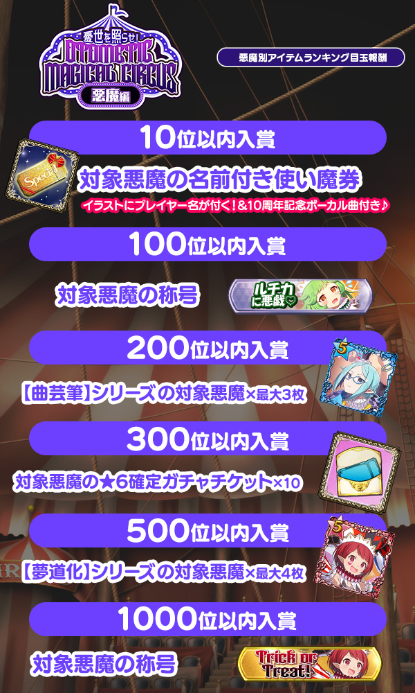 | 50位以内 入賞 | 強ショットガチャチケット4(対象悪魔の属性) | 1枚 |
