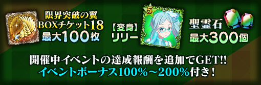 | 限界突破の翼 BOXチケット18 | 最大30個 | 最大60個 | 最大100個 |