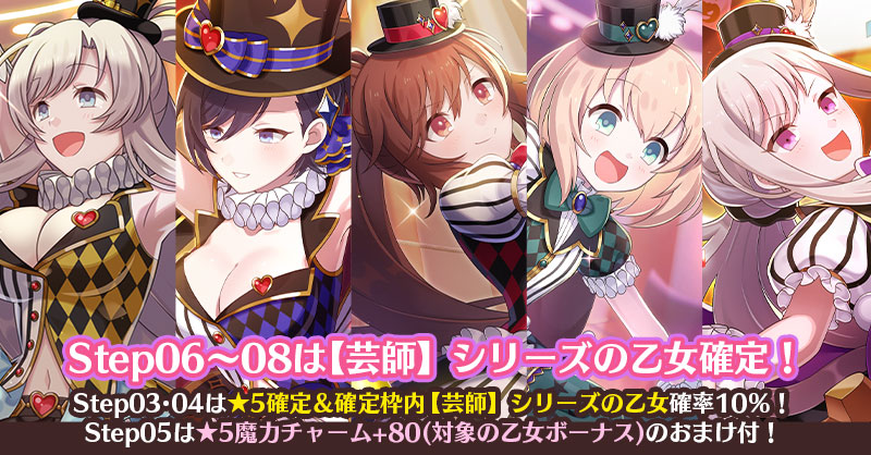 【Step03・04は【芸師】シリーズの乙女出現確率10%!】クラウンサーカス乙女ステップアップガチャ