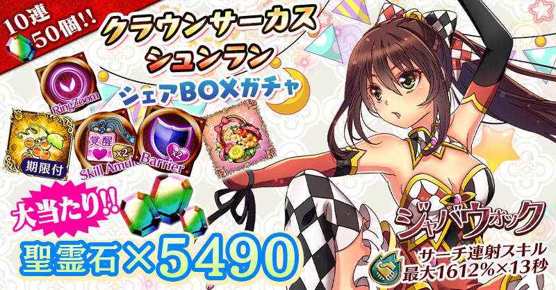 【『聖霊石×5490』が当たるチャンス!】クラウンサーカスシュンランシェアBOXガチャ