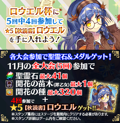 【毎週土曜!4回参加で★5【秋読書】ロウエルGET】11月全国スコア大会!!